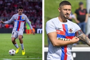竞彩开奖-瑞士第四级别球队YF尤文图斯穿巴萨球衣比赛,只改了队徽和广告